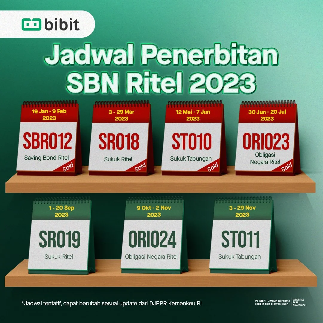 Walaupun masa penawaran SR019 ini hamppir satu bulan, tapi dengan kuota yang terbatas dari pemerintah, kamu tidak bisa lagi menunda-nunda pembelian. Sebab bila kuota sudah habis, maka kamu harus gigit jari karena tidak bisa berinvestasi pada SR019. Untuk melihat jadwal lengkap penerbitan SBN Ritel 2023, kamu bisa melihat informasinya di bawah ini.