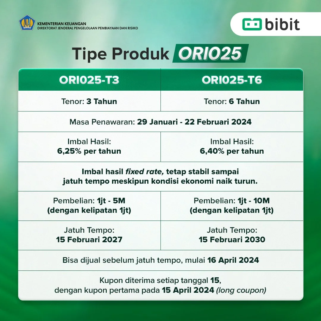 ORI025-T6 (tenor enam tahun) memiliki kupon dengan besaran 6,40%